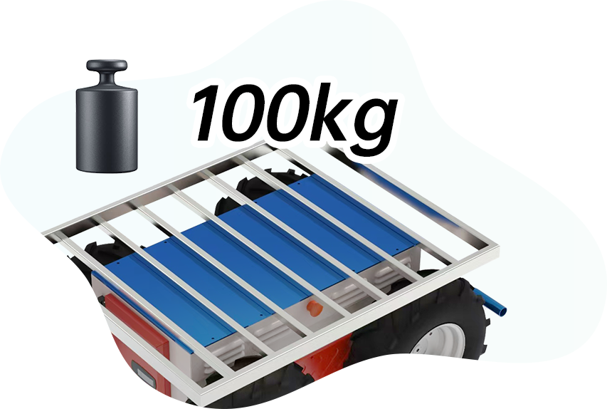 創新雙電機設計,配備0.78kW/1.5kW功率直流無刷電機,強勁而穩定的動力輸出,能夠在農業復雜場景、坑洼泥濘路況下的平穩行駛;支持最大負載100kg,輕松應對運輸肥料、農藥、種子、機具等農業生產物資,以及采收后轉運瓜果、蔬菜、糧食等農產品。