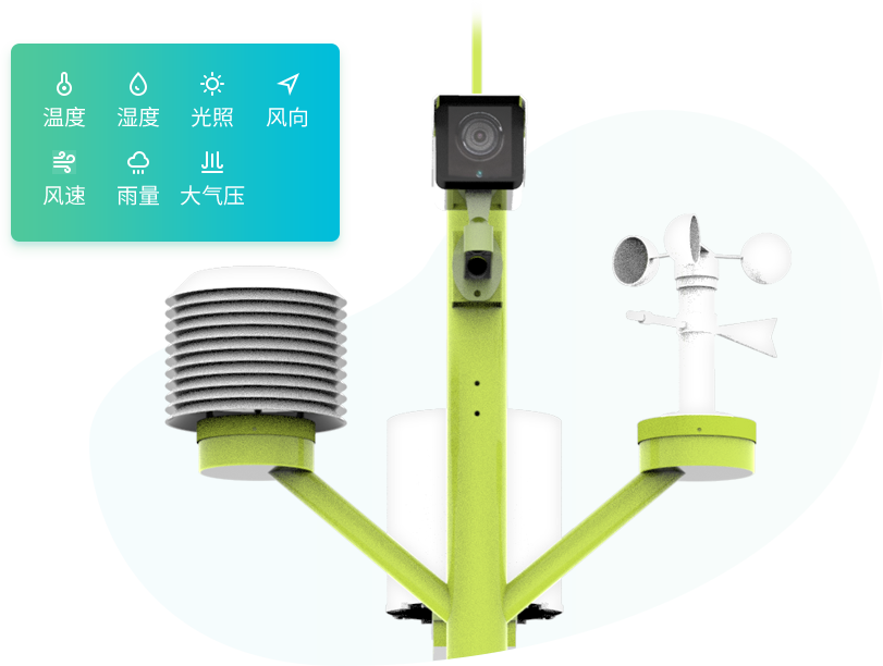 一體化設計,外觀精美,高度集成,采集空氣溫度、空氣濕度、光照度、氣壓、降雨量、風速、風向七要素,實時視頻監控田間動態。