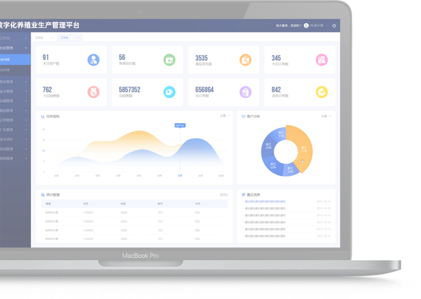 數字化養殖業生產管理平臺是針對大型養豬企業特點,結合信息化手段建立的養殖信息化管理系統,涵蓋養殖 品種、人、物料、財務 等養殖場管理的多個環節,滿足 企業管理、生產管理和數據分析 的需求,使企業由原來的 粗放型管理向精細管理、數字化管理轉變