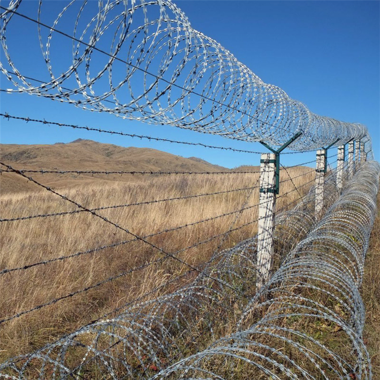 圍墻安全防護刀刺滾網也稱為刀片刺絲、刀片刺網,是一種新型防護網。