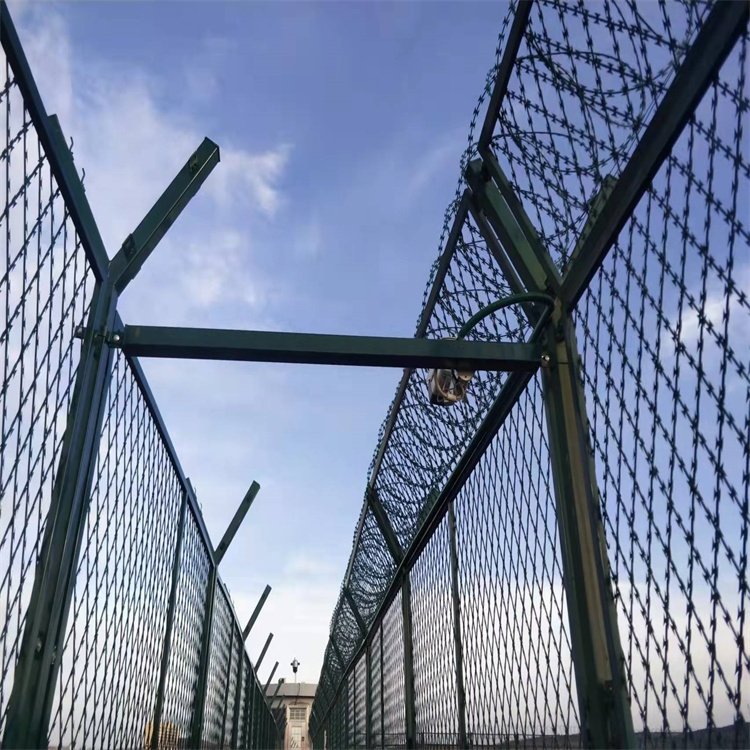具有防攀爬、抗沖擊、抗剪切特性和杰出的震慎作用,專用于監獄、看守所、警戒線軍事基地等高安全范疇。監獄、看守所巡查道阻隔網上部裝置刀片剌網(刺絲滾籠) , 刀片剌網具有嚇阻、防翻越等效果。