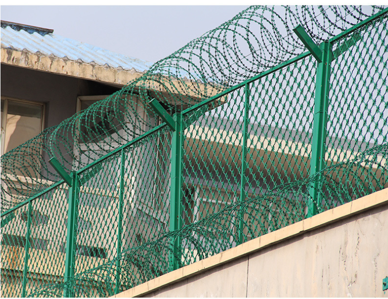 監(jiān)獄、看守所巡邏道隔離網(wǎng)上部安裝刀片剌網(wǎng)(刺絲滾籠) ,刀片刺網(wǎng)具有嚇阻、防翻越等效果材質(zhì)堅硬,高強(qiáng)度高張力,造型設(shè)計獨(dú)特,不宜觸摸因而能達(dá)到極好的防護(hù)隔離效果。巡邏道隔離網(wǎng)還具有施工簡便經(jīng)濟(jì)實用等優(yōu)點(diǎn)。