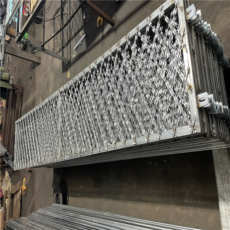 監(jiān)獄刀片刺網(wǎng)具有美觀、經(jīng)濟實用、防阻效果好、施工便利等優(yōu)異特點,刀片刺網(wǎng)由熱鍍鋅鋼板或不銹鋼薄板沖壓出尖銳的刀片狀,高張力鍍鋅鋼絲或者不銹鋼絲做芯線組合而成的阻絕器材。由于刺網(wǎng)造形獨特不易觸摸,因而能達到極好的防護隔離效果。刀片刺網(wǎng)已被廣泛應(yīng)用于工礦企業(yè),園林公寓,邊防