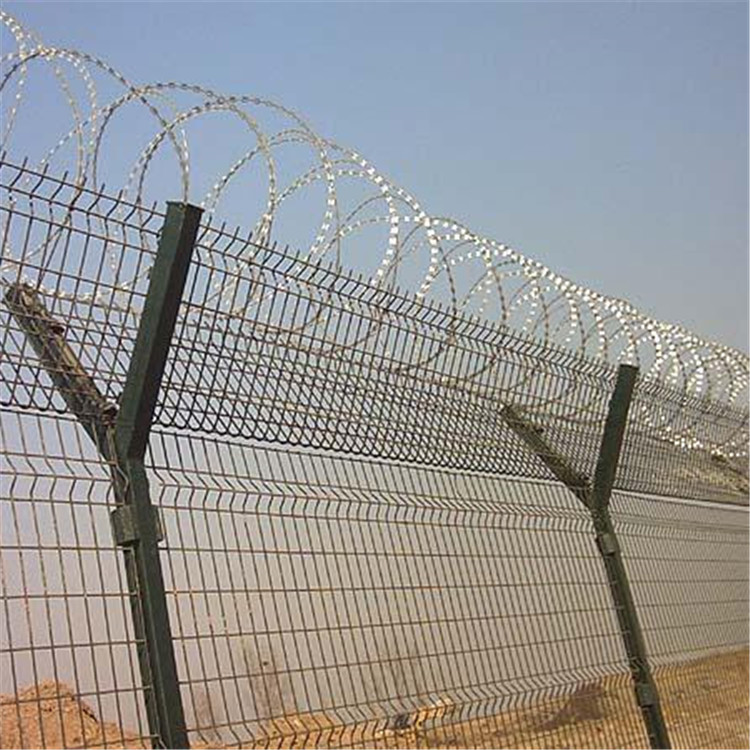 監(jiān)獄鋼網(wǎng)墻的主要作用就是防攀爬。主要是采用高強度的刀片刺網(wǎng)與普通防護(hù)網(wǎng)的結(jié)合,由V型支架立拄,加強型焊接片網(wǎng)安全防盜連接件和刀片剌網(wǎng)組成監(jiān)獄鋼網(wǎng)墻是一種新型防護(hù)網(wǎng),由銳利尖角鍍鋅鋼板或不銹鋼薄板做刀片鋼絲做芯線組合而成的防護(hù)器材。