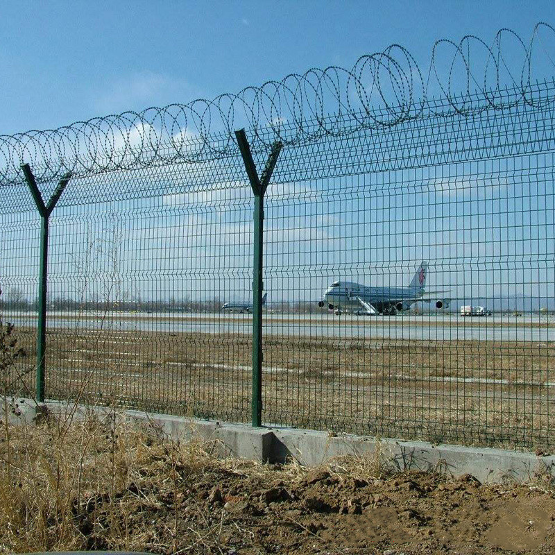 飛機(jī)場(chǎng)護(hù)欄網(wǎng)又叫機(jī)場(chǎng)圍界護(hù)欄網(wǎng)、機(jī)場(chǎng)隔離網(wǎng)、機(jī)場(chǎng)隔離柵等,是作為飛機(jī)場(chǎng)邊界保護(hù)的重要設(shè)施,防止對(duì)機(jī)場(chǎng)設(shè)施的破壞,保證機(jī)場(chǎng)安全,讓飛行更加順利。飛機(jī)場(chǎng)護(hù)欄網(wǎng)又稱(chēng)作“Y型安全防御護(hù)網(wǎng)”,由V型支架立柱,加強(qiáng)型焊接片網(wǎng),安全防盜連接件和熱鍍鋅刀片刺籠組成強(qiáng)度和安全防御性級(jí)別很高。該形式的護(hù)欄網(wǎng)近年來(lái),被廣泛應(yīng)用在機(jī)場(chǎng),軍事基地等高安全場(chǎng)所。在護(hù)欄網(wǎng)頂部加裝刀片刺絲、刀片刺繩后又很好地增強(qiáng)了防護(hù)性能。